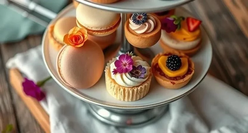 3. Десерты: Чизкейк с ягодами, макаруны, брауни, фруктовый салат, пирожные с кремом.