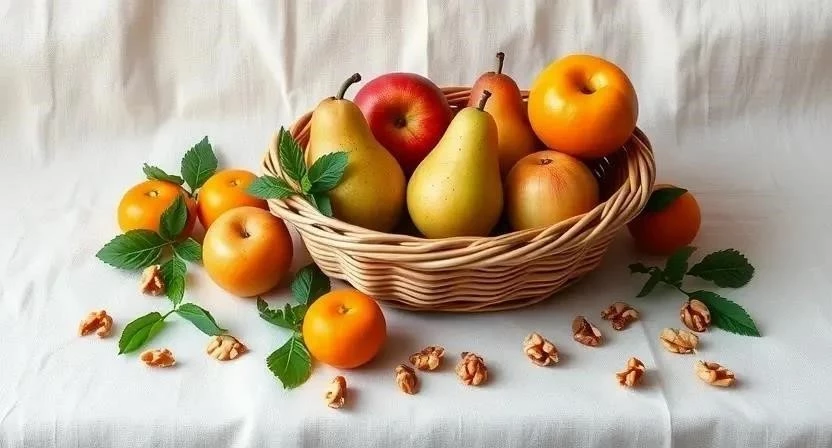 - Классическая корзина: Просто наполните корзину различными фруктами, красиво их разложив.
