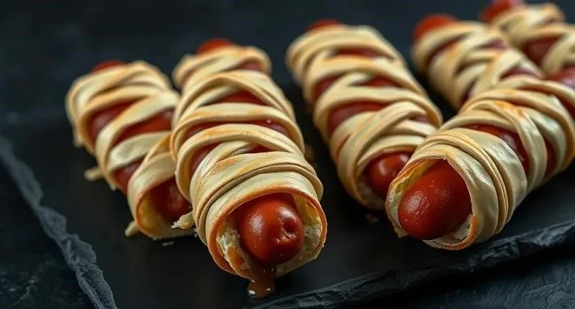 | Сосиски-мумии | Сосиски, слоеное тесто, кетчуп |