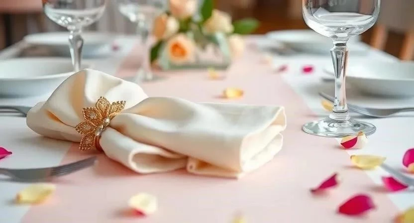 - Добавьте салфетки – их можно положить на тарелку, слева от вилок или в специальное кольцо.