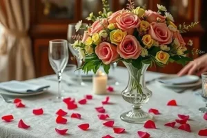 - Как сервировать стол для романтического ужина? Используйте свечи, цветы, красивую скатерть и изящную посуду.