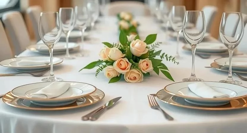 | Классический | Элегантность, сдержанность | Фарфор, серебро | Цветы, свечи |
