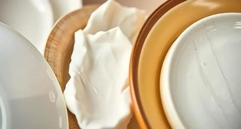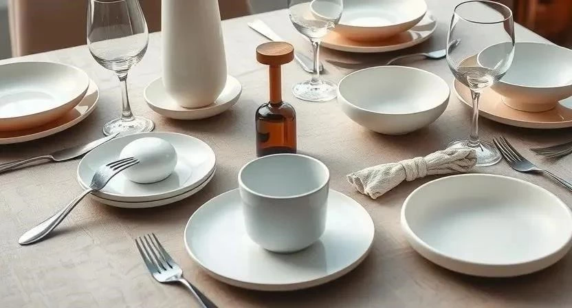 - Минимализм: Однотонная посуда, лаконичные приборы.
