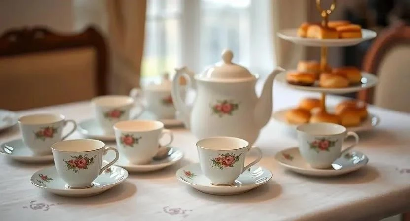 | Повседневное чаепитие | Простые чашки и блюдца | Фарфор, фаянс | Минимальный |