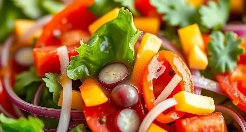 - Салаты: Оформите салат соусом в виде рисунка или украсьте его каплями масла разных цветов.