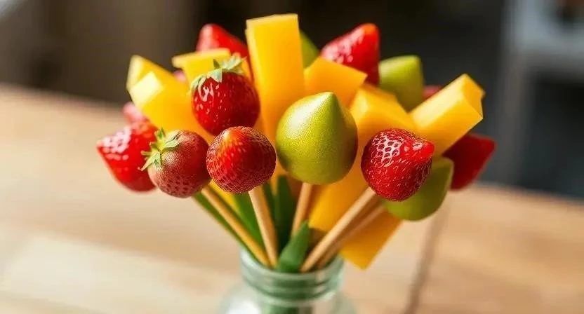 Фруктовый букет – это оригинальный и эффектный подарок или украшение стола. Для его создания потребуется немного больше времени и усилий, но результат того стоит. Выбирайте фрукты, которые хорошо держат форму и не слишком мягкие. Например, яблоки, груши, апельсины, киви, виноград. Вам также понадобится пенопластовый конус или другая основа для букета, шпажки и декоративные элементы.