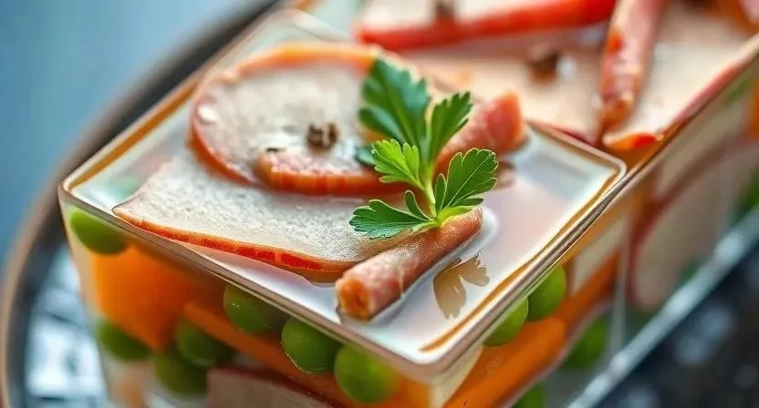 | Заливное из мяса | Мясо, бульон, желатин | Украсить желе, соусом, зеленью, овощами |