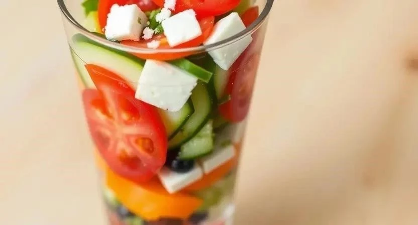 - Салат в стакане или креманке: Слои салата выкладываются в прозрачный стакан или креманку, создавая эффектный визуальный ряд. Украсьте зеленью, ягодами или кремом.
