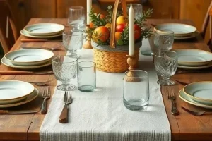 - Декор стола: Украсьте стол цветами, свечами, фруктами или другими декоративными элементами.