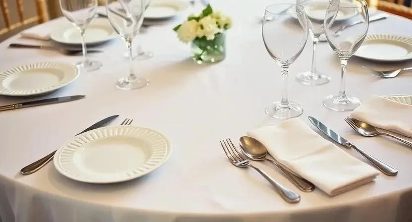 Ответ: Цвет скатерти должен гармонировать с посудой и общим стилем сервировки. Материал зависит от стиля и формата мероприятия.