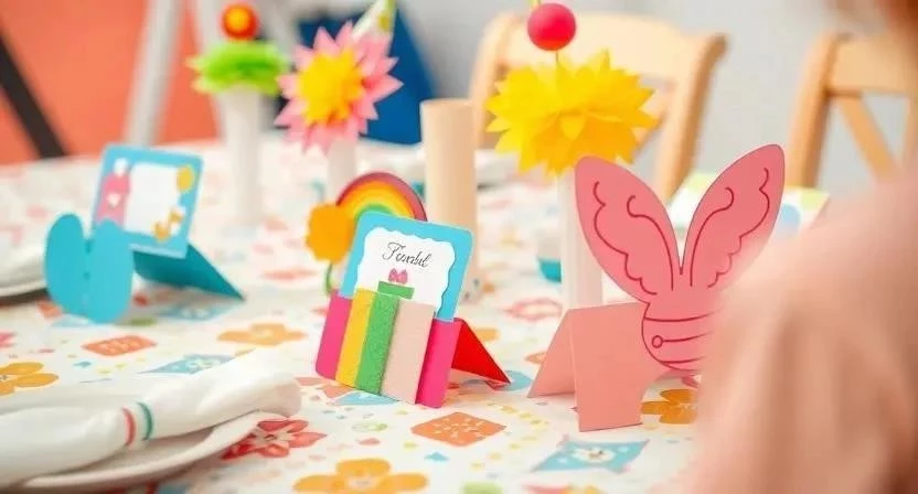 Сделайте украшения своими руками! Это не только сэкономит деньги, но и добавит празднику индивидуальности. Изготовьте держатели для салфеток, карточки с именами и украшения для стульев. Используйте бумагу, ленты, шпажки и другие подручные материалы. Я часто делаю гирлянды из цветной бумаги вместе с детьми – это веселое и увлекательное занятие. Они с гордостью украшают ими стол.