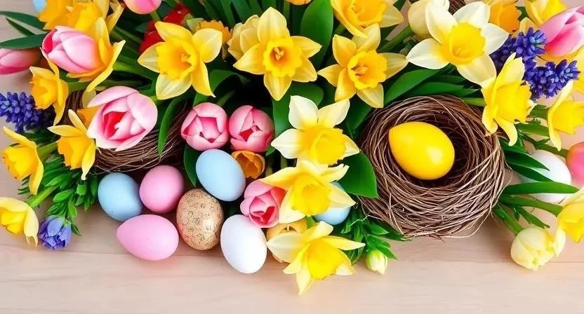 | Какие цветы использовать? | Весенние, живые или искусственные |