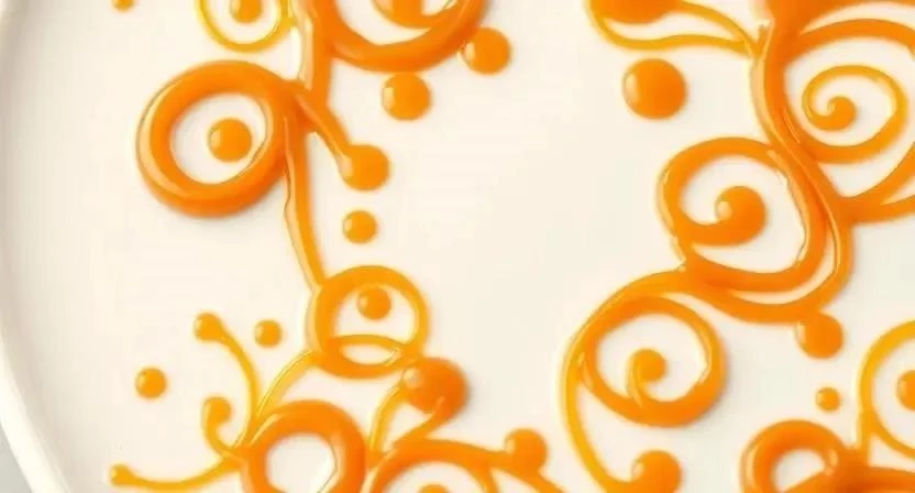 - Нанесение на тарелку: Аккуратно перенесите карамельные узоры на подготовленную тарелку.
