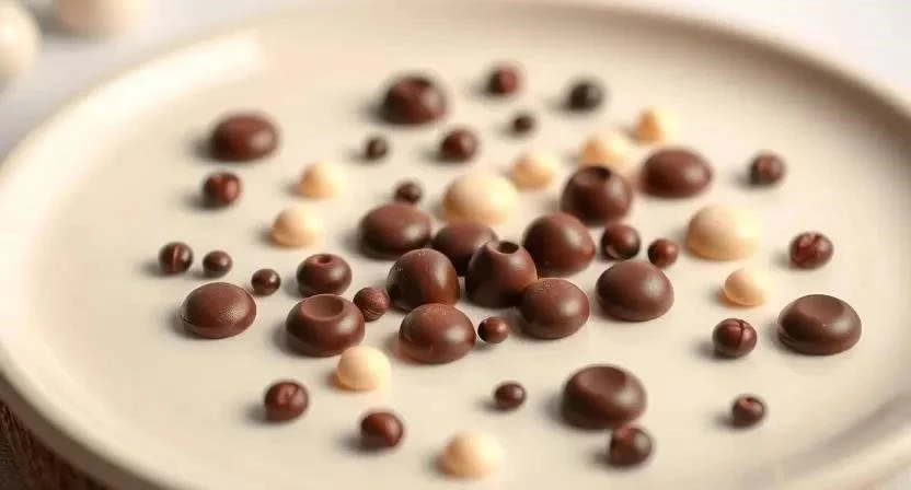 - Капли: Растопите шоколад и нанесите его на тарелку небольшими каплями.
