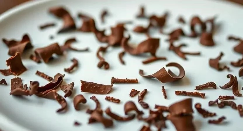 - Стружка: Натрите шоколад на терке и посыпьте тарелку.
