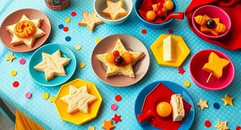 - «Капитан Америка» сэндвичи: Сэндвичи с ветчиной и сыром, украшенные звездой из сыра.