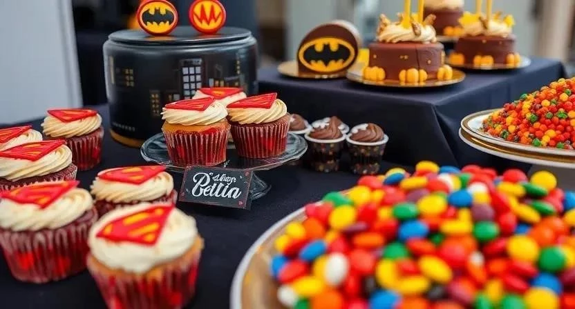 - «Супергеройские» кексы: Кексы с кремом и украшениями в виде логотипов супергероев.