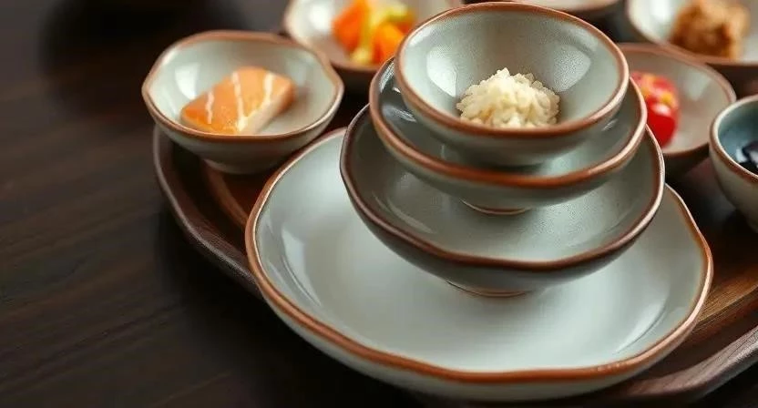 Традиционная японская посуда отличается разнообразием форм, материалов и цветов. Типы посуды: донбури (глубокие чаши для риса и лапши), сою-сара (небольшие тарелки для соуса), хасиоки (подставки для палочек), тюван (подставки под горячее). Материалы: керамика (особенно популярна керамика ки-сетто), дерево (лакированное или необработанное), бамбук. Формы: круглые, квадратные, прямоугольные, асимметричные. Цвета: натуральные оттенки, пастельные тона, приглушенные цвета. Выбор посуды – это важный этап сервировки, который определяет общий стиль и настроение.