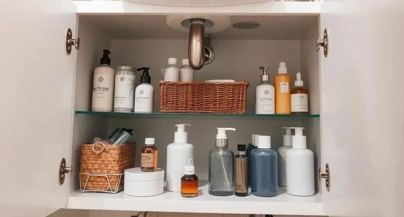 В ванной комнате под раковиной можно хранить косметику, средства гигиены, полотенца, бытовую химию. Используйте контейнеры для хранения косметики и средств гигиены. Полотенца можно хранить на полках или в корзинах. Бытовую химию храните в недоступном для детей месте. Однажды я забыл закрыть контейнер с чистящим средством, и мой ребенок чуть не выпил его. С тех пор я всегда очень внимательно слежу за безопасностью.