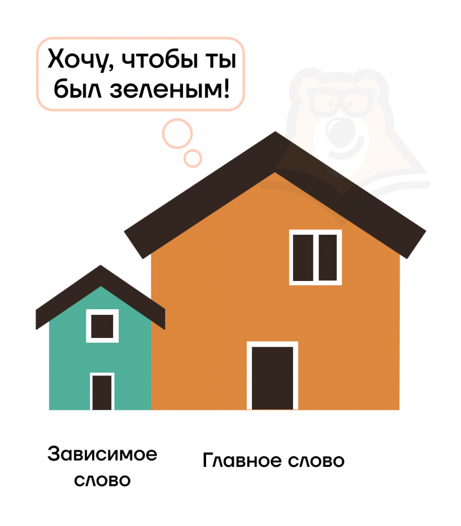 | Кто главный в доме словосочетаний?Хозяином в доме словосочетаний будет главное слово, так как именно оно будет передавать зависимому, каким оно должно быть. |