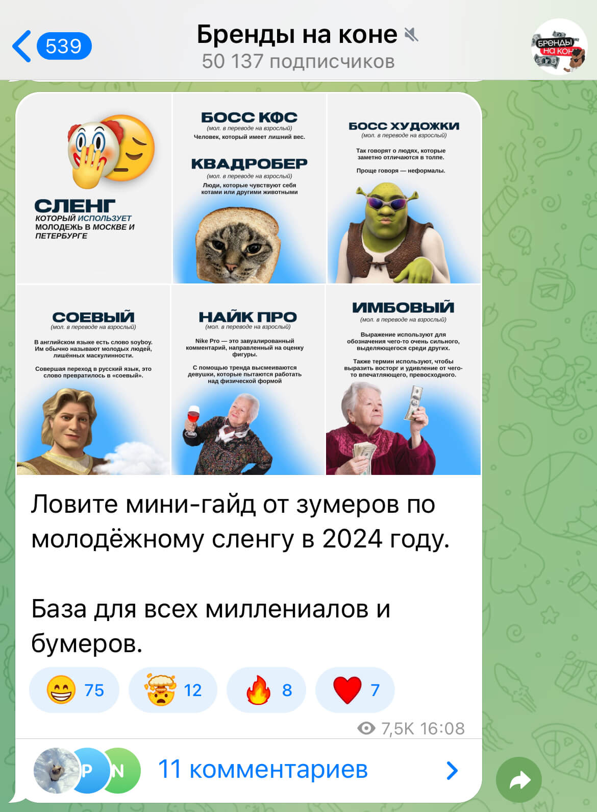 Среди блогеров и в сообществах популярна тема перевода с молодежного языка на взрослый. Взрослой аудитории объясняют, что означает то или иное выражение на сленге зумеров, такие посты собирают много реакций.