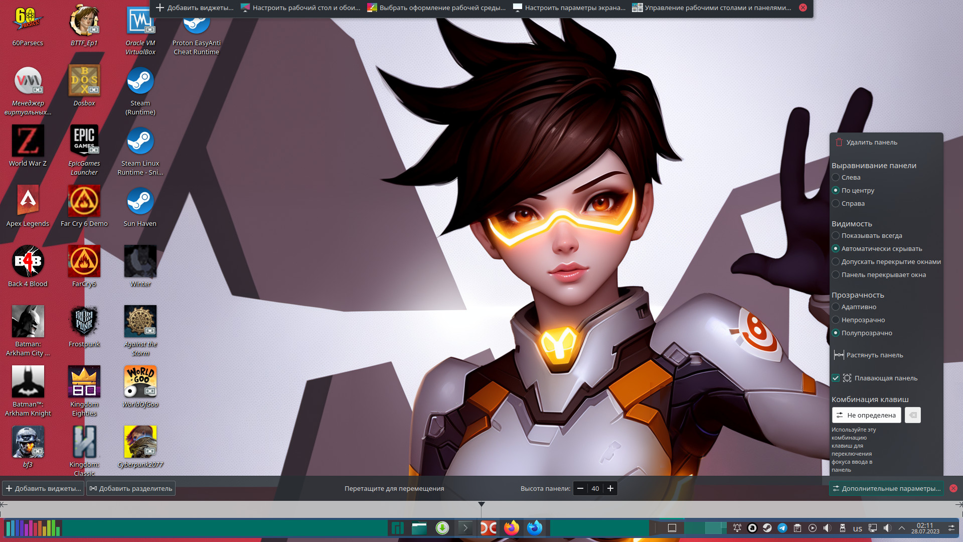 Нажмите ПКМ на появившуюся панель и выберите настройки