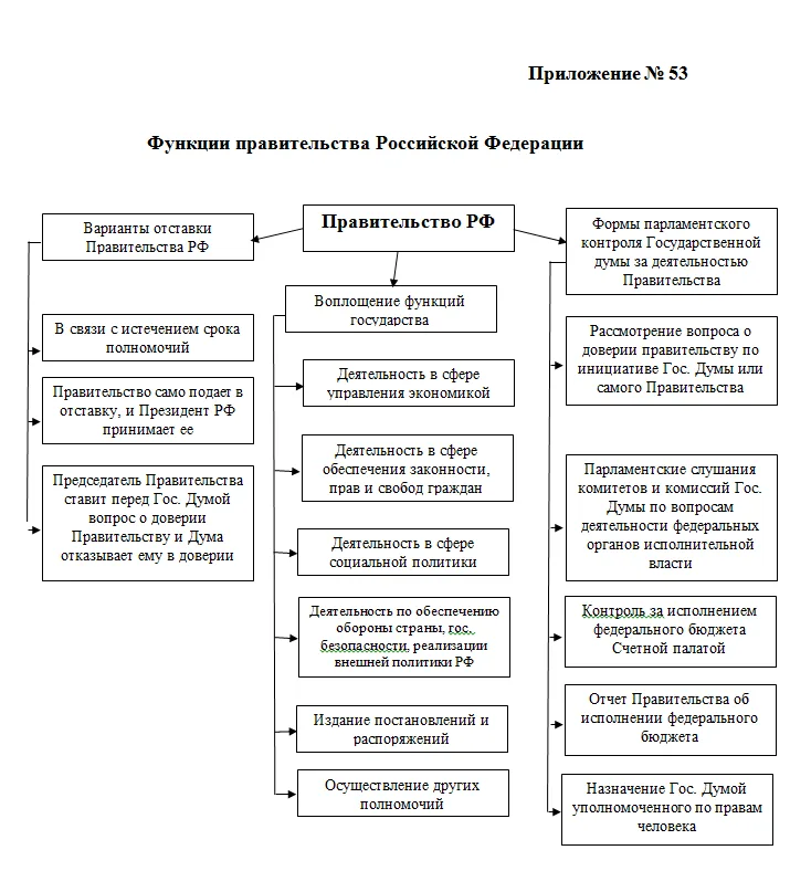 Рассмотрим функции и полномочия должностного лица, несущего ответственность за руководство различными сферами правительственной работы.