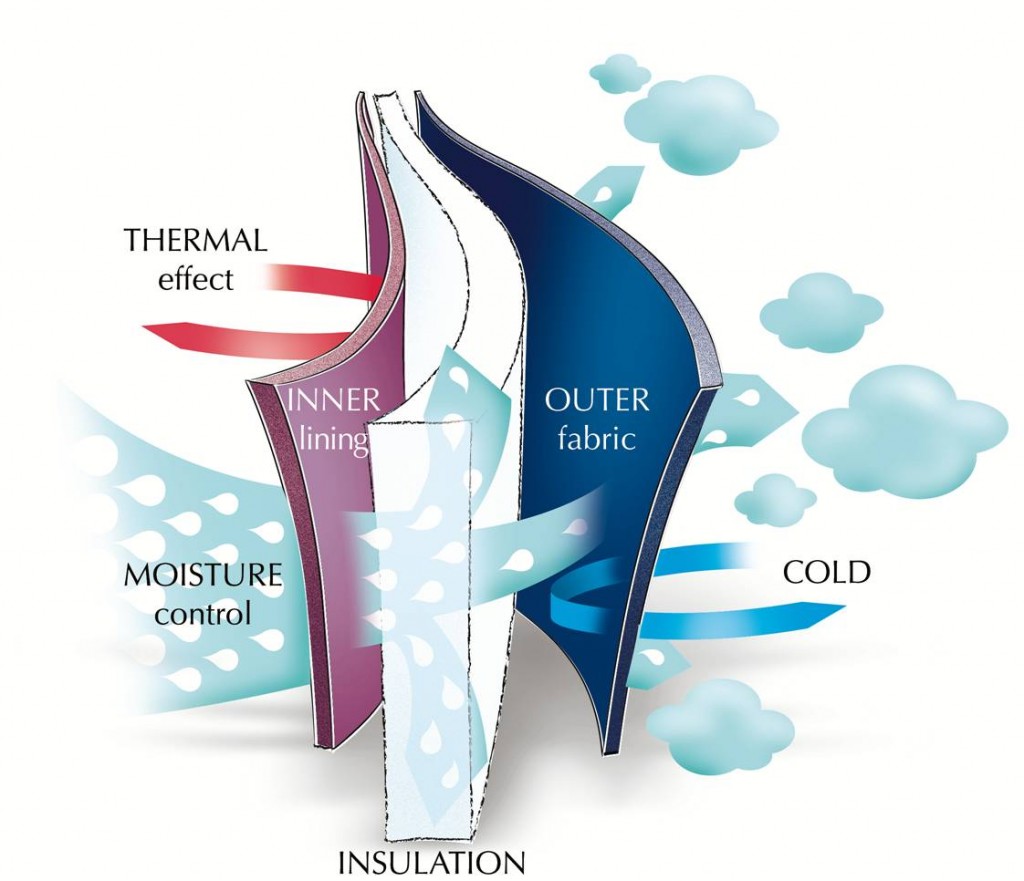 Воздух — лучший термоизолятор. Поэтому, чем больше неподвижного воздуха находится в единице утеплителя, тем лучше и дольше одежда сохраняет тепло. А чем легче волокна, тем больше полостей внутри для удержания воздуха. Поэтому наиболее подходящим вариантом является легкий утеплитель с малой плотностью.