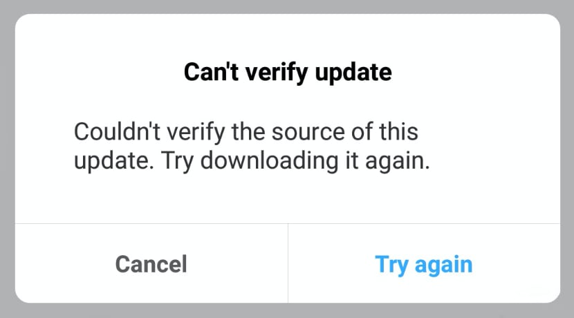 При загрузке обновления на устройство соединение может быть нестабильным. В этом случае файлы прошивки могут быть повреждены, а на экране появляется соответствующая ошибка: