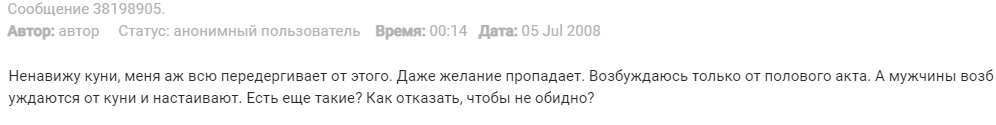 С форума https://www.u-mama.ru/forum/family/love-and-sex/854841/3.html: