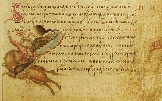 Кстати говоря, вот еще несколько интересных отличий: привычный нам вопросительный знак заменялся точкой с запятой, а вместо самой точки с запятой — двоеточие. Заглавная «красная» буква — была только вначале абзаца, остальные же были прописными, даже если предложение явно заканчивалось.