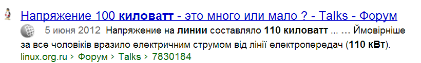 Заблуждение первое: “Линия 110 кВт”. Пример запроса Яндекса: