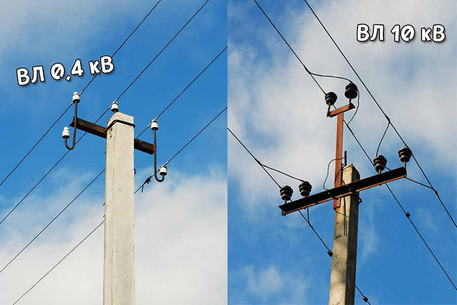 Визуальные отличия ВЛ 0,4 кВ от линий 10 кВ