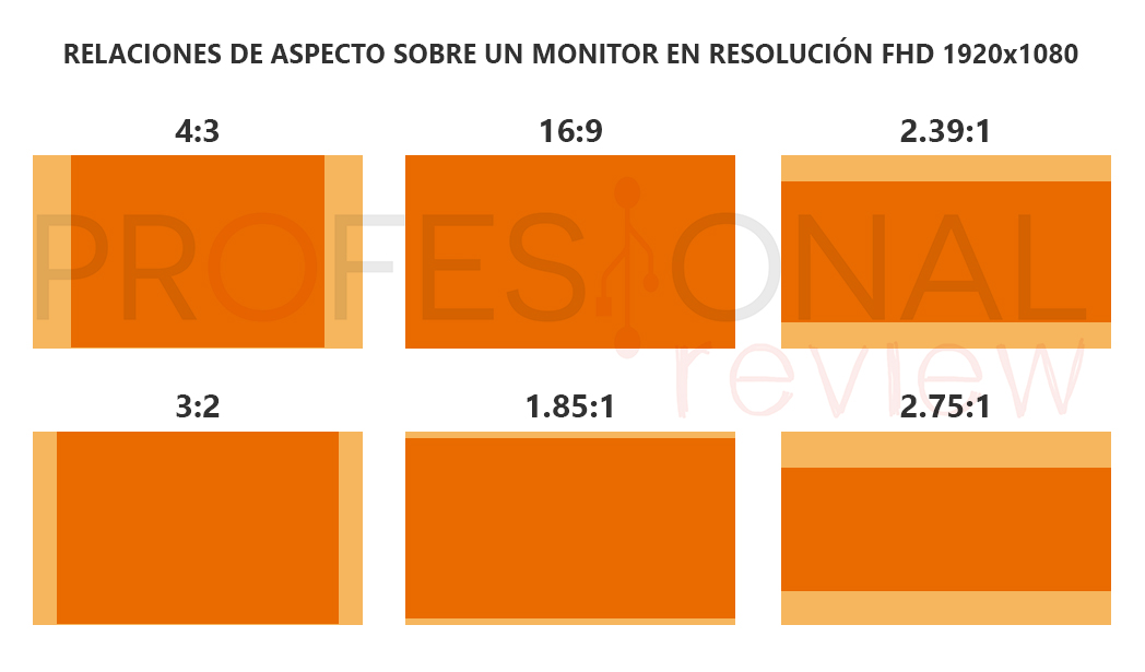 Помимо разрешений экрана, мы также имеем прямое отношение к этому. В настоящее время число стандартных форматов было расширено, и широкие и ультраширокие модели стали очень популярными, особенно для изогнутых мониторов. В настоящее время формат «кино», который мы знаем, составляет 16: 9, и это самое популярное соотношение сторон на мониторах, но в последнее время он увеличился до 2, 39: 1. Мы показываем вам сравнительный график на основе Full HD, чтобы вы поняли, что мы имеем в виду: