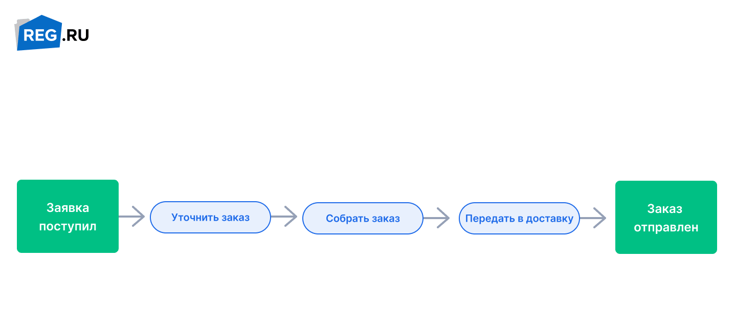 Бизнес-процессы можно оформить в виде схемы. Если максимально упростить, это будет выглядеть вот так: