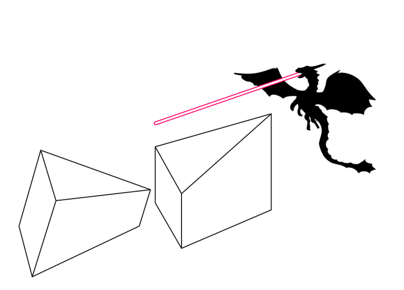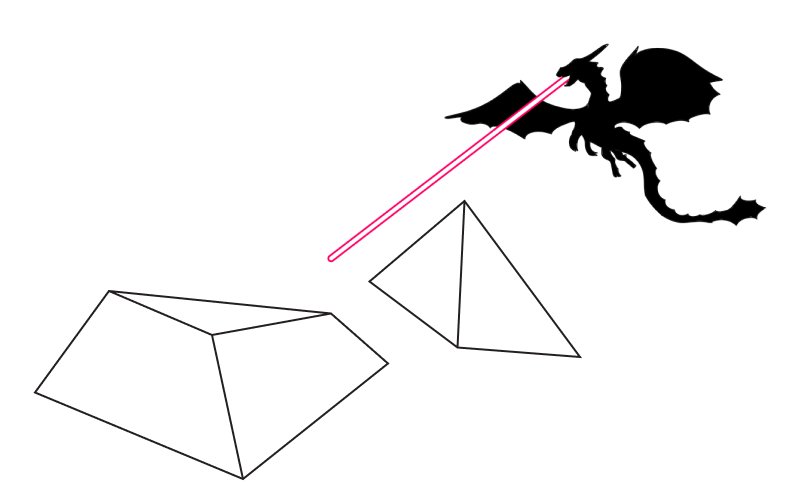 Прилетел дракон к пирамиде и разрезал ее. Ахнули люди: верхушка пирамиды съехала, осталась лишь прямоугольная плоскость.