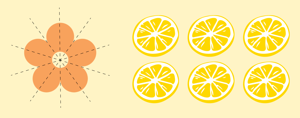 Фигуры с центральной симметрией, как и фигуры с осевой симметрией, окружают нас повсюду. Центральную симметрию можно заметить в живой природе, в разрезе фруктов и в цветах.
