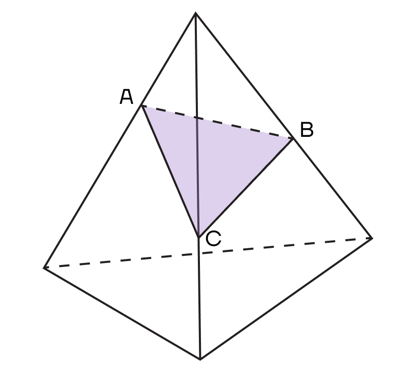 Рассмотрим сечение пирамиды АВС: вершины А, В и С лежат точно на ребрах.