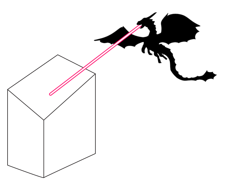 Увидел дракон обычный дом — в форме параллелепипеда, — и снова луч разрезал здание. Осталась вместо крыши дыра в форме четырехугольника.