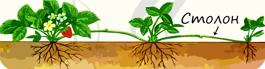 Весьма эффективный способ размножения (к примеру, один экземпляр земляники за два года дает начало в среднем 200 новым растениям) и расселения (куст земляники за год заселяет 1,5 м 2 окружающей территории).