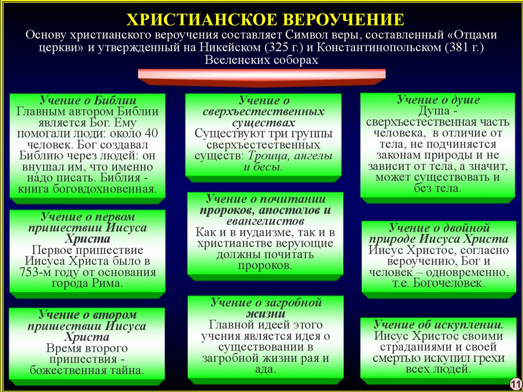 Основные догматы христианства составлялись многими столетиями под воздействием политических, экономических, социальных и этнических преобразований, философских и религиозных течений.