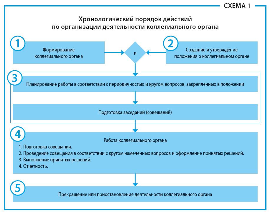 Существуют определенные правила организации и документирования работы коллегиального органа. Укрупненно процесс представлен в Схеме 1.