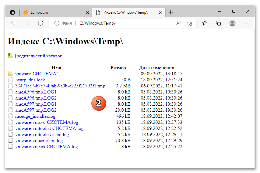 Абсолютно любой современный браузер позволяет осуществлять навигацию по директориям и взаимодействовать с файлами, например, для их просмотра или загрузки в интернет. В случае с системными данными, коими являются обе папки «Temp» и их содержимое, такую возможность вряд ли можно назвать целесообразной, но как еще один метод решения нашей задачи она заслуживает рассмотрения.