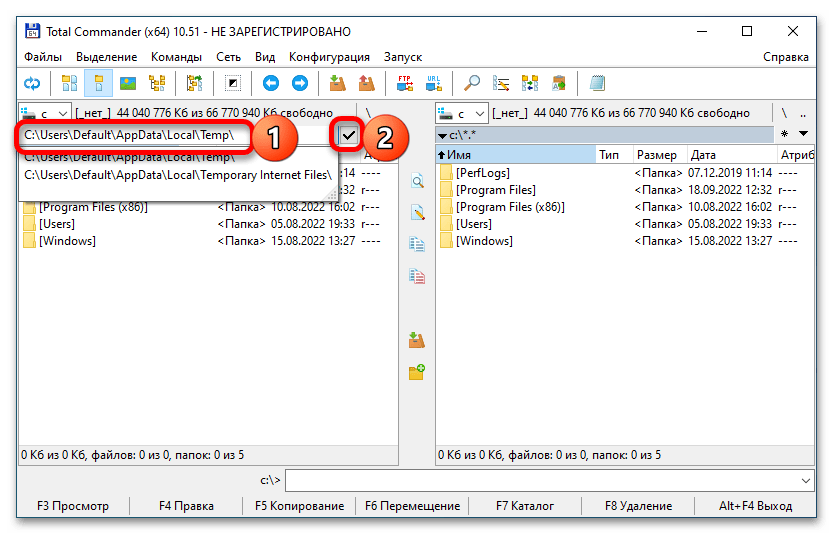 Алгоритм использования в данном случае ничем не отличается от уже упомянутого нами выше «Проводника» — достаточно скопировать расположение папки «Temp», вставить его в адресную строку и нажать «Enter» для перехода. Это же можно сделать и вручную, последовательно открывая каждую директорию.