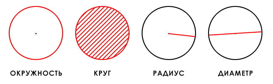 Для вычисления площади круга, в формулах были использованы следующие термины, значение которых нужно знать, чтобы точно понимать принципы расчета.