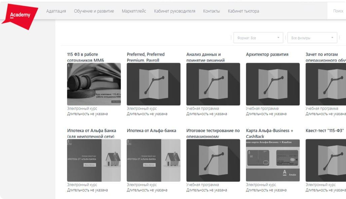 Раньше главная страница портала обучения, где сотрудники проходили курсы, выглядела вот так. Отдельное приложение, отдельное окно в браузере, отдельный продукт со своим дизайном и другими прелестями «изолированности».