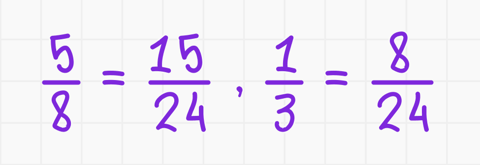 - Общий знаменатель для 8 и 3 — 24.