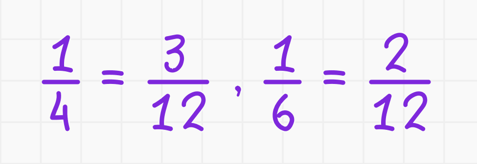 - Общий знаменатель для 4 и 6 — 12.