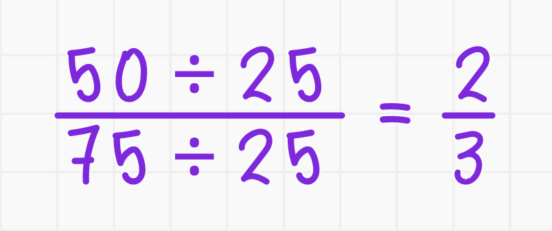Пример 2. Упростим дробь 50/75: