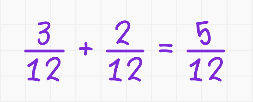 Сложение. Если знаменатели дробей одинаковы, то чтобы сложить эти дроби, нужно сложить их числители; знаменатель остаётся прежним, то есть